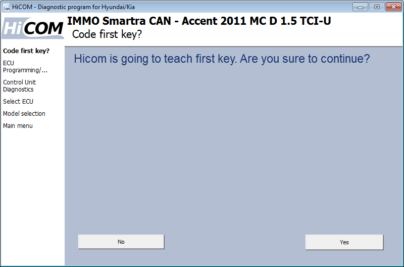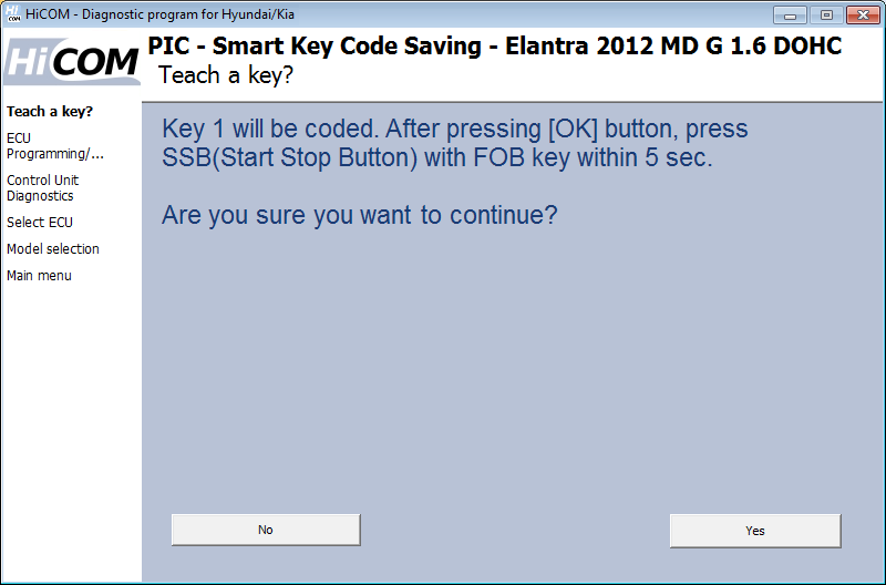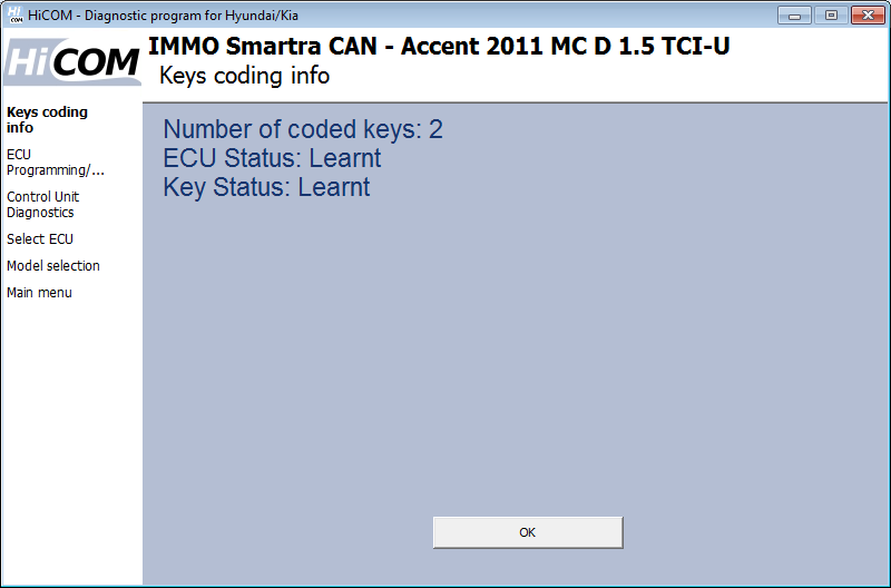 Vi se va cere dacă doriți să codificați o altă cheie. Dacă faceți clic pe „da”, HiCOM vă va cere să introduceți următoarea cheie. Pot fi codificate până la 4 chei (unele unități de control permit unități de până la 8 chei). Dacă faceți clic pe „Nu”, procesul de codare se încheie și nu mai sunt adăugate chei.